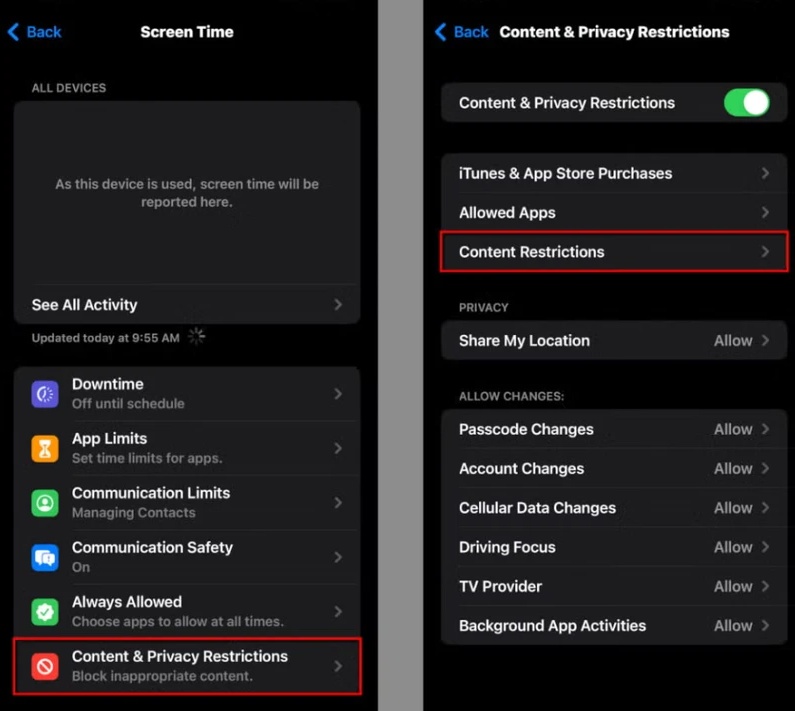 - Tap Content & Privacy Restrictions
